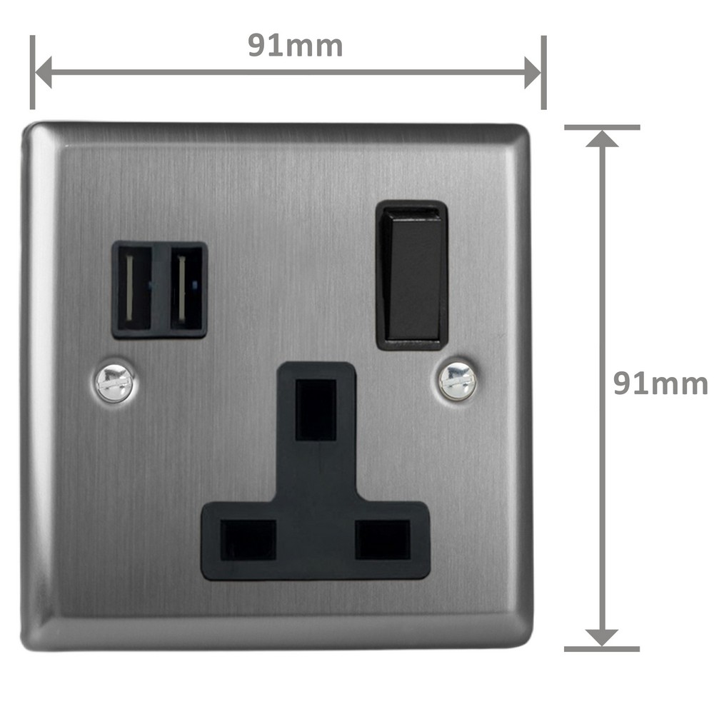 Product Description: 1-Gang 13A Switched Socket with 2 x 17W Shared USB A Charging Ports
