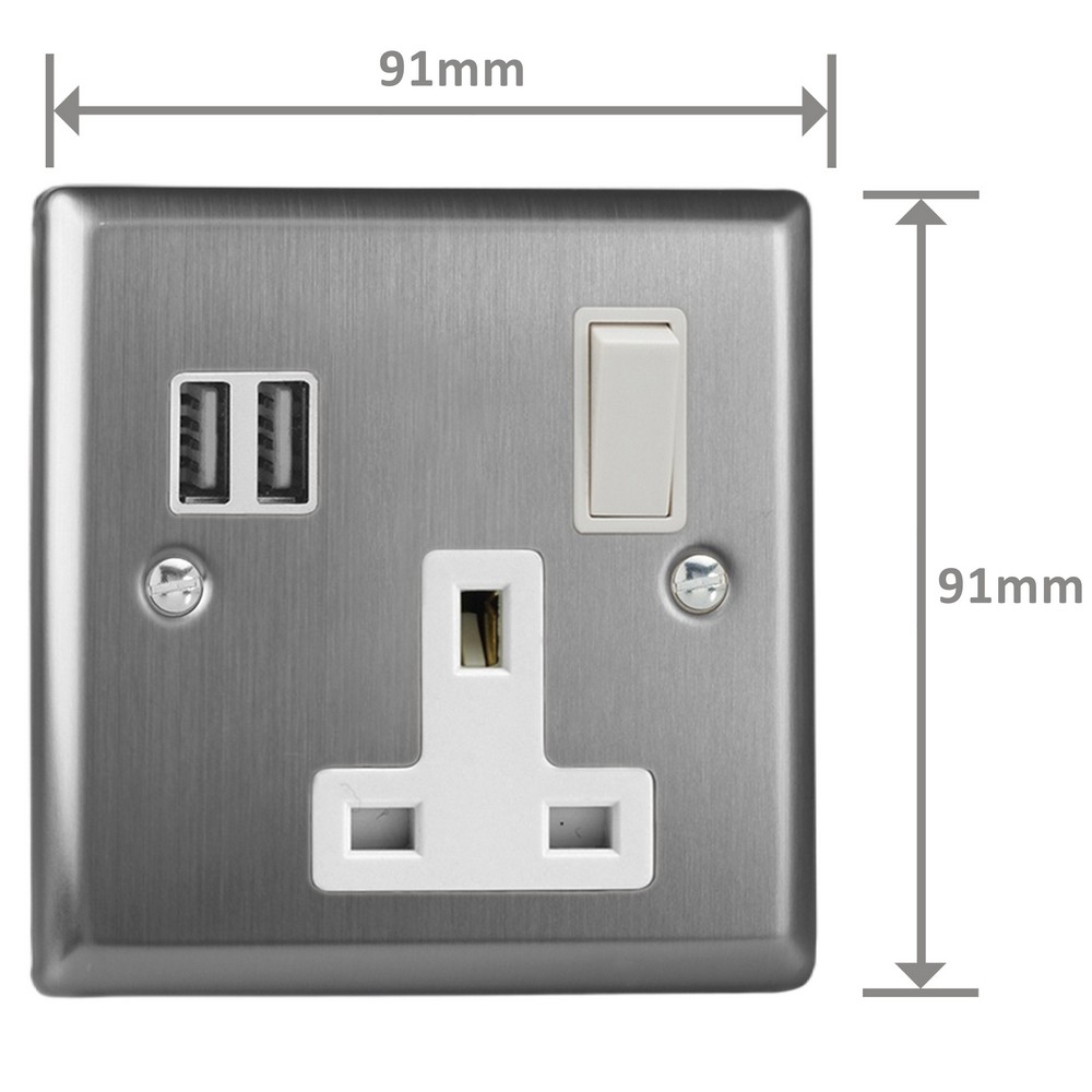 Product Description: 1-Gang 13A Switched Socket with 2 x 17W Shared USB A Charging Ports