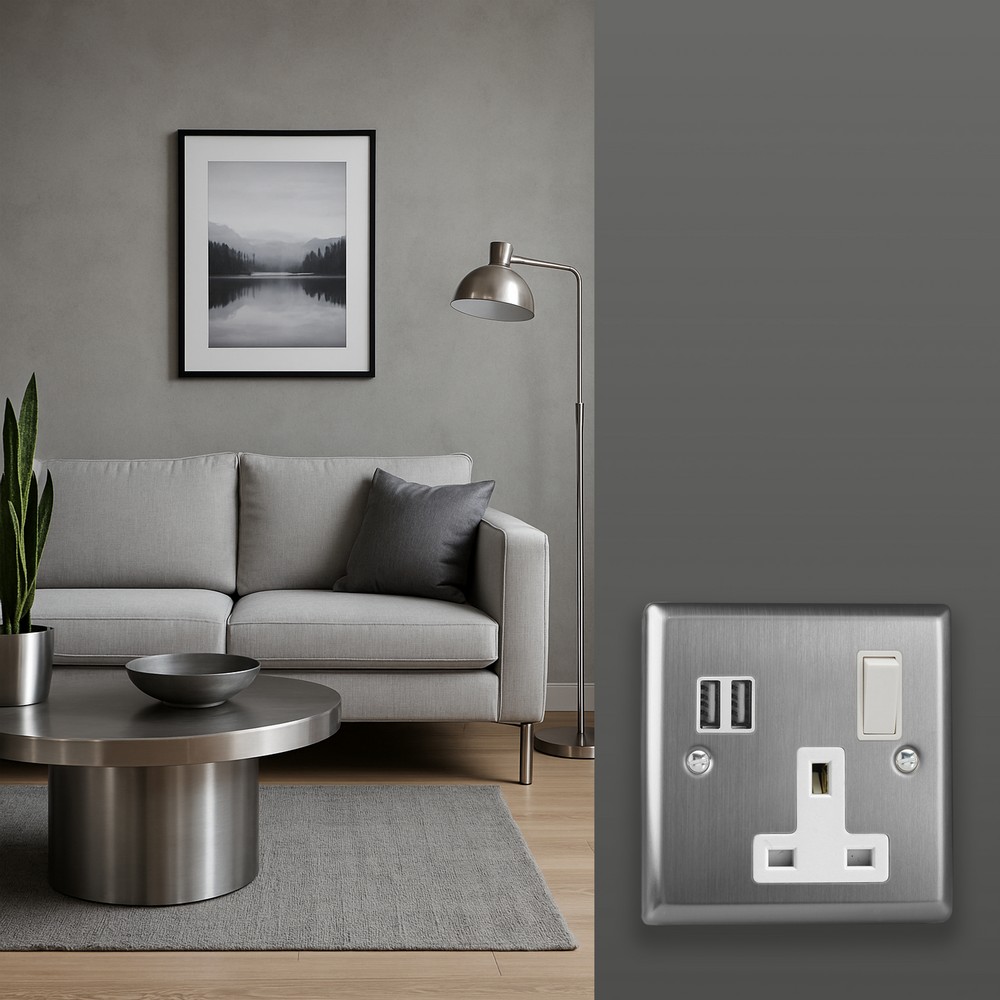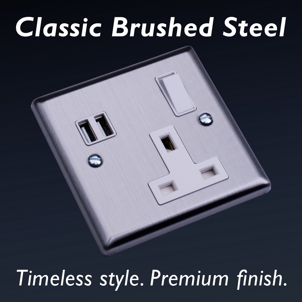 With its clean, understated style, Brushed Steel brings effortless sophistication to any room ? a finish chosen by designers for its versatility.Varilight Decorative wiring accessories are British made and covered by the Varilight lifetime guarantee.