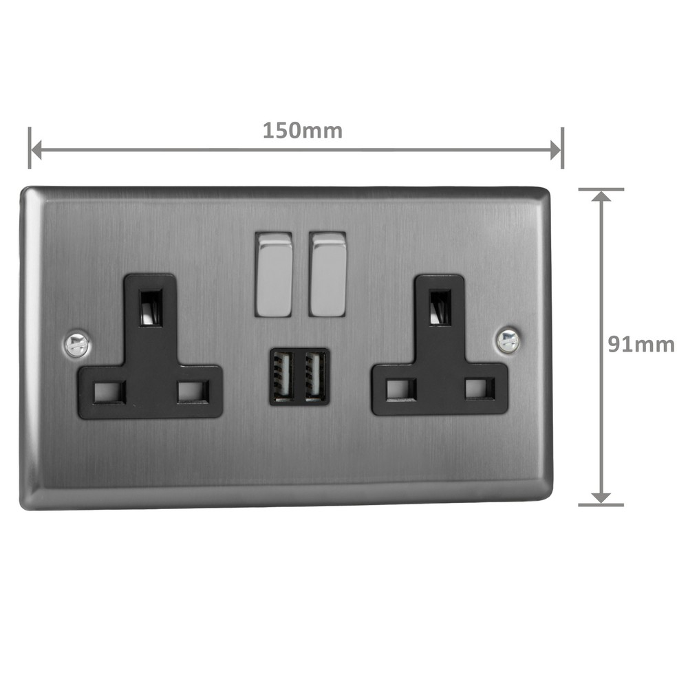 Product Description: Double Socket with 2 x 12W Shared USB A Charging Ports