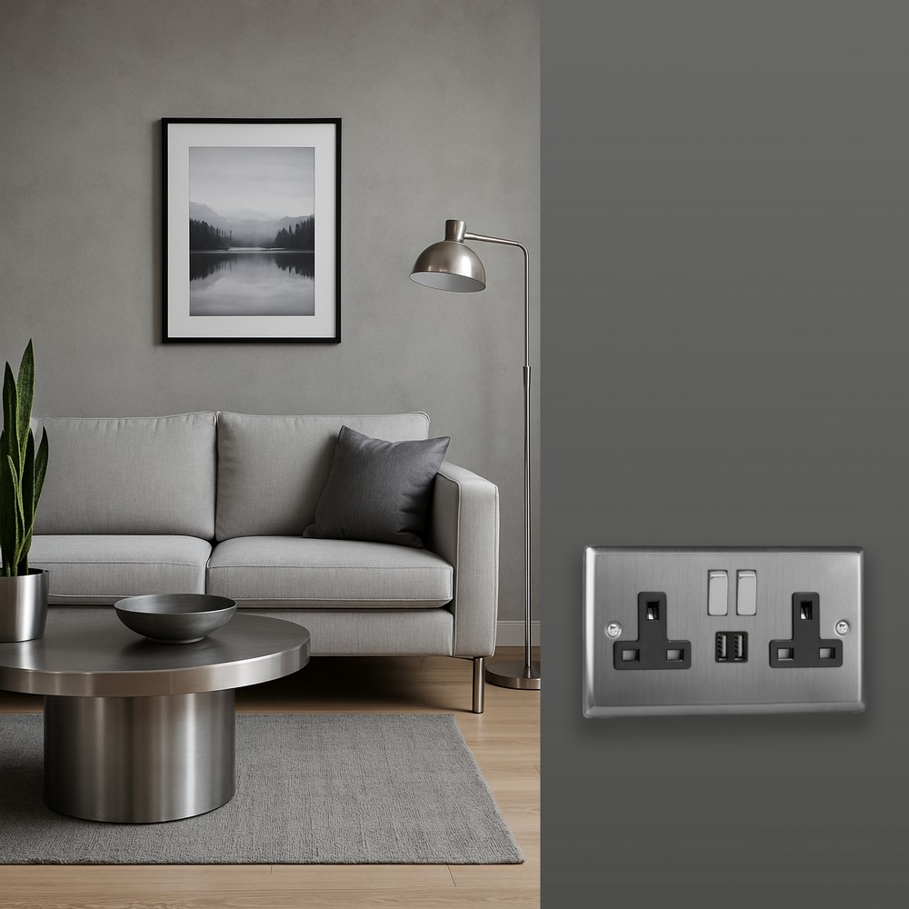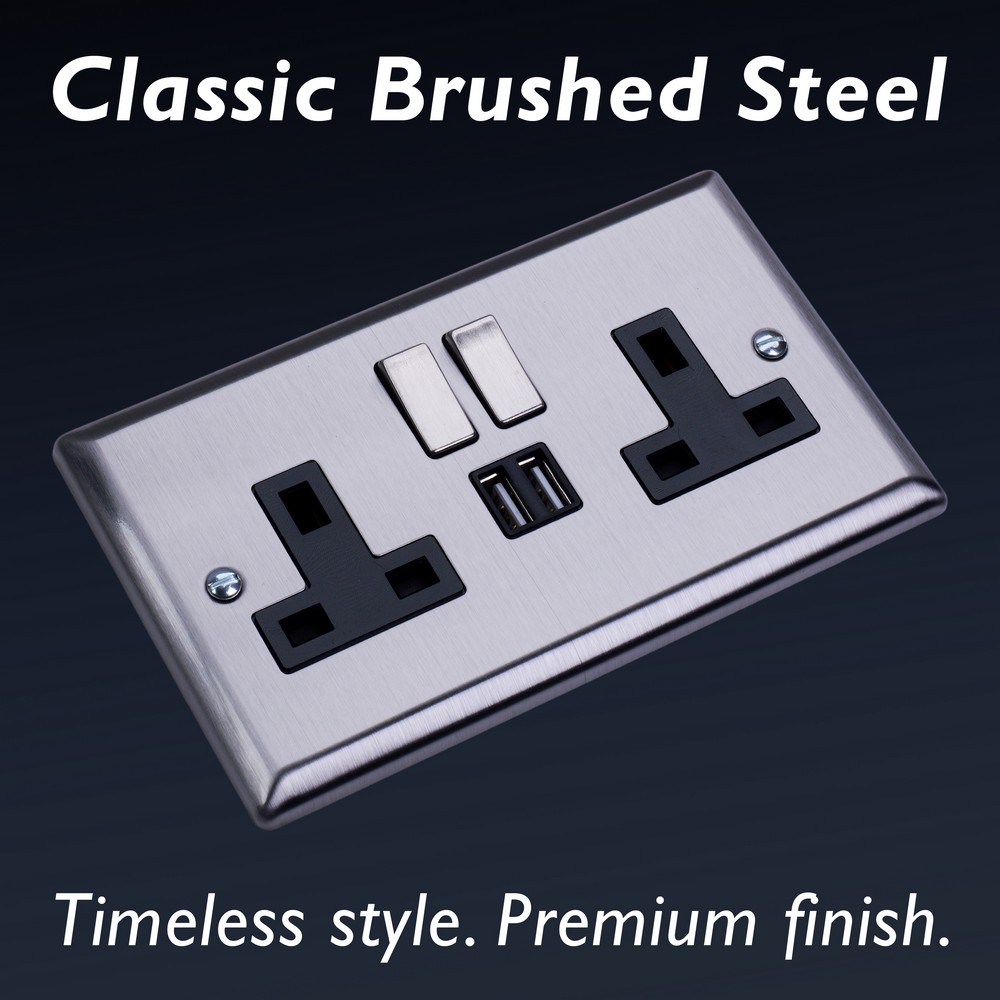 With its clean, understated style, Brushed Steel brings effortless sophistication to any room ? a finish chosen by designers for its versatility.Varilight Decorative wiring accessories are British made and covered by the Varilight lifetime guarantee.