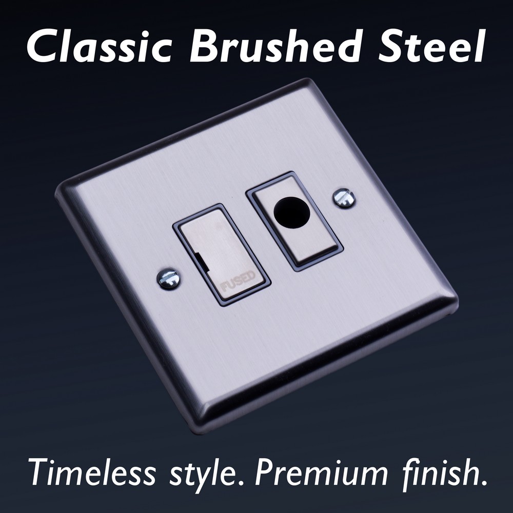 With its clean, understated style, Brushed Steel brings effortless sophistication to any room ? a finish chosen by designers for its versatility.Varilight Decorative wiring accessories are British made and covered by the Varilight lifetime guarantee.