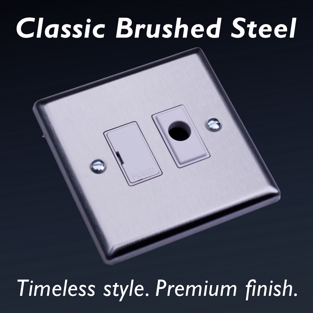 With its clean, understated style, Brushed Steel brings effortless sophistication to any room ? a finish chosen by designers for its versatility.Varilight Decorative wiring accessories are British made and covered by the Varilight lifetime guarantee.