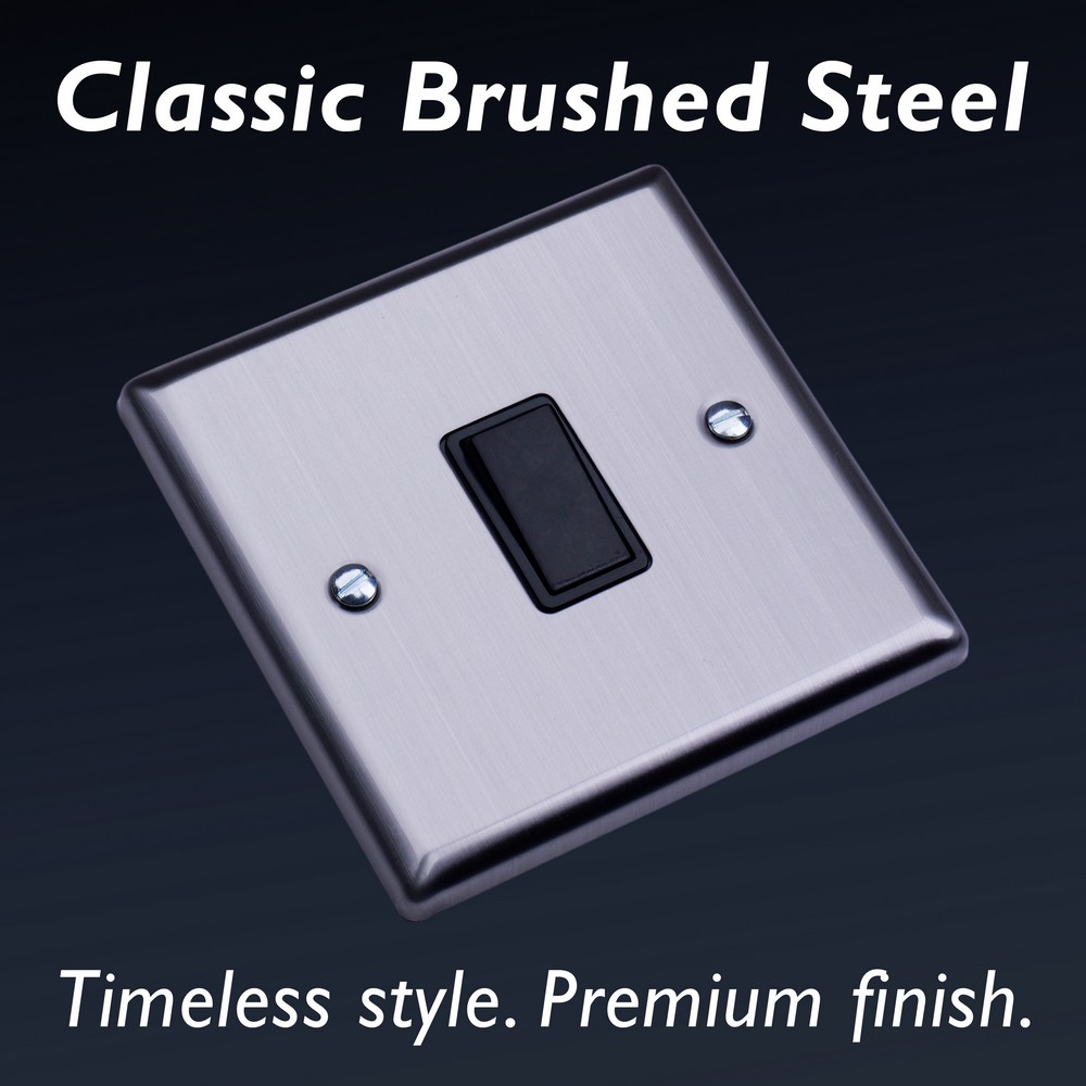 With its clean, understated style, Brushed Steel brings effortless sophistication to any room ? a finish chosen by designers for its versatility.Varilight Decorative wiring accessories are British made and covered by the Varilight lifetime guarantee.
