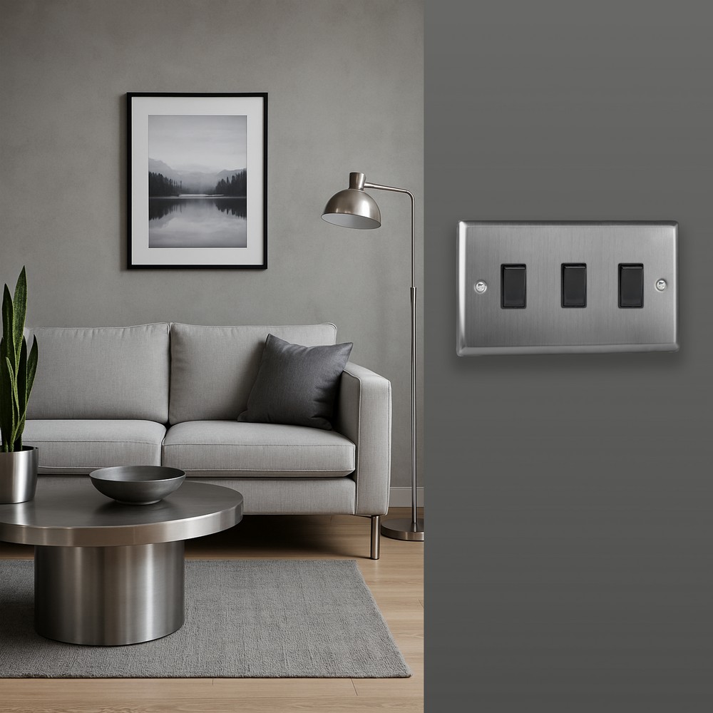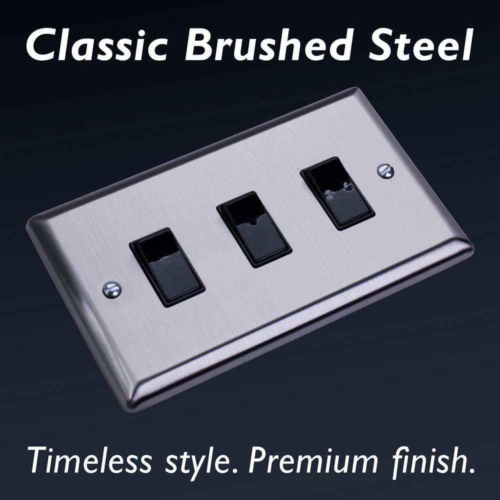 With its clean, understated style, Brushed Steel brings effortless sophistication to any room ? a finish chosen by designers for its versatility.Varilight Decorative wiring accessories are British made and covered by the Varilight lifetime guarantee.
