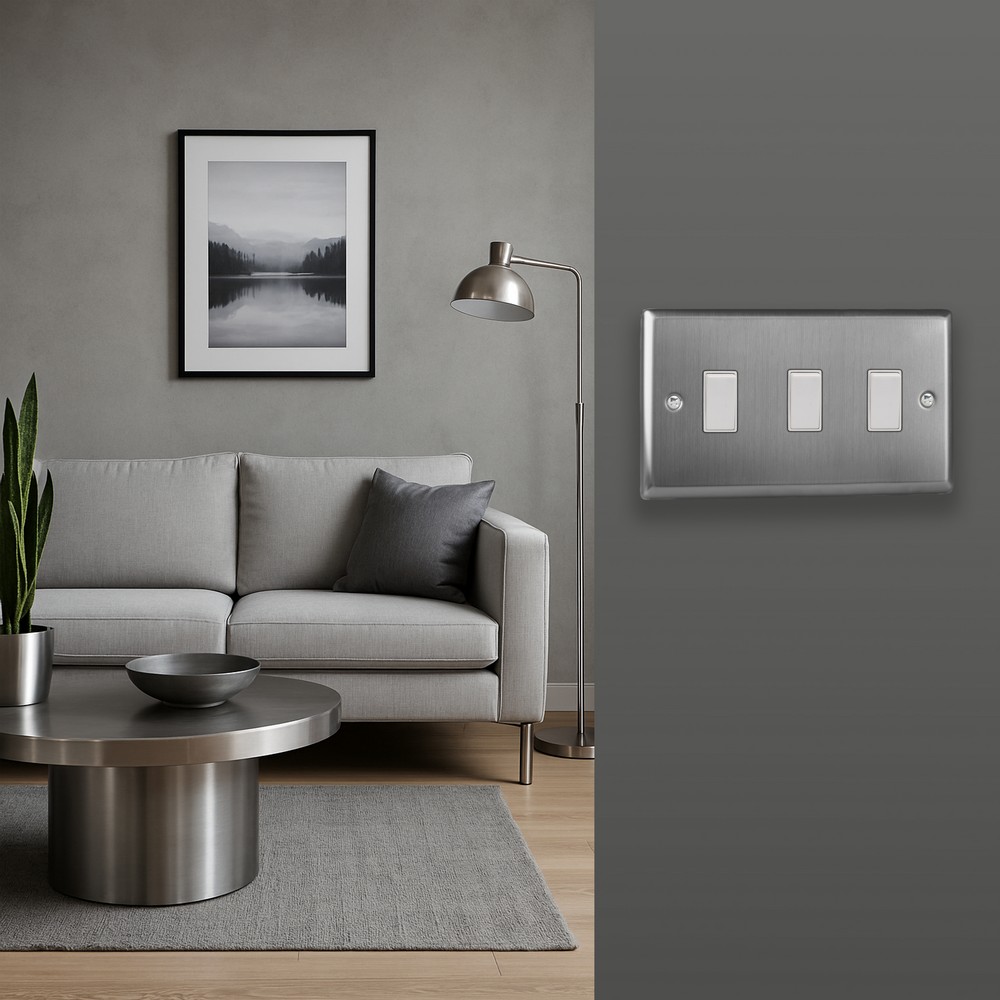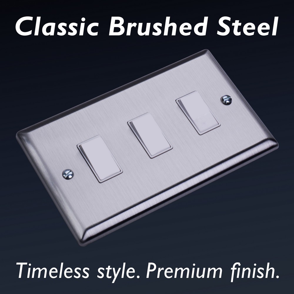 With its clean, understated style, Brushed Steel brings effortless sophistication to any room ? a finish chosen by designers for its versatility.Varilight Decorative wiring accessories are British made and covered by the Varilight lifetime guarantee.