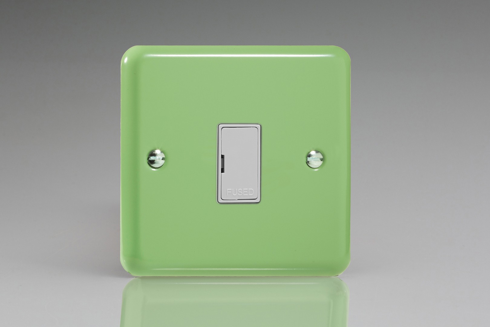 The beautiful Beryl Green finish features white inserts with chrome screws.? Varilight Decorative wiring accessories are British made and covered by the Varilight lifetime guarantee.