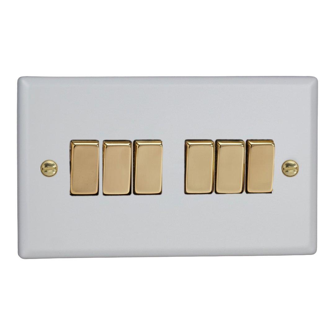 With its low sheen finish, the Matt White finish really shows off the brass detailing of the Vogue Collection. Varilight Decorative wiring accessories are British made and covered by the Varilight lifetime guarantee.