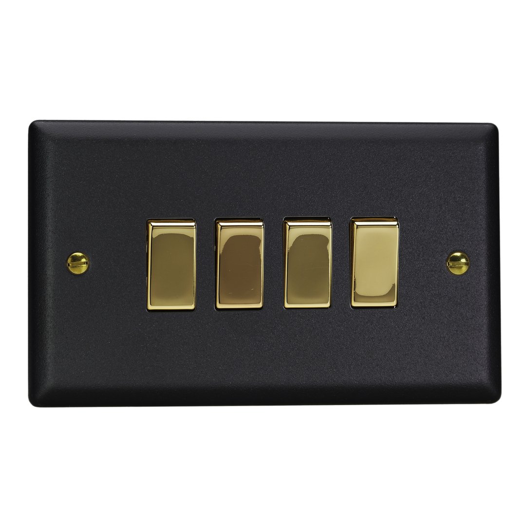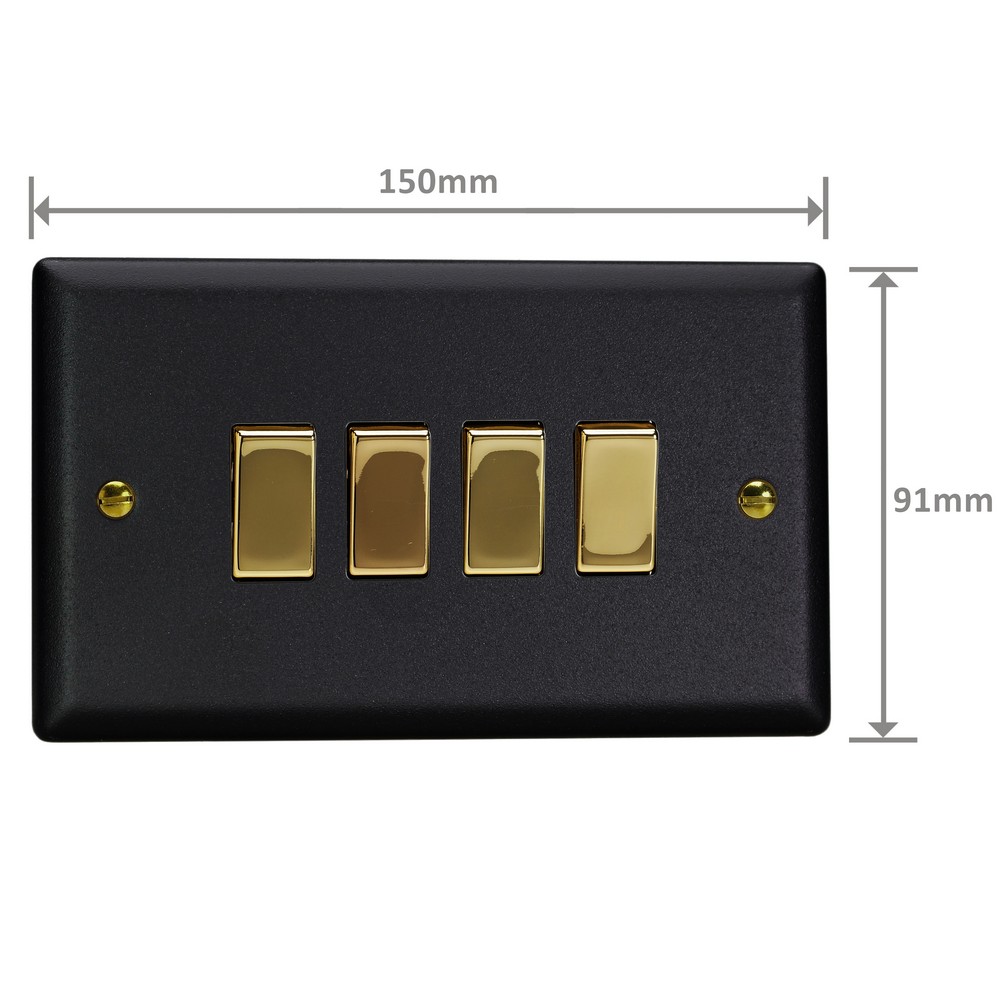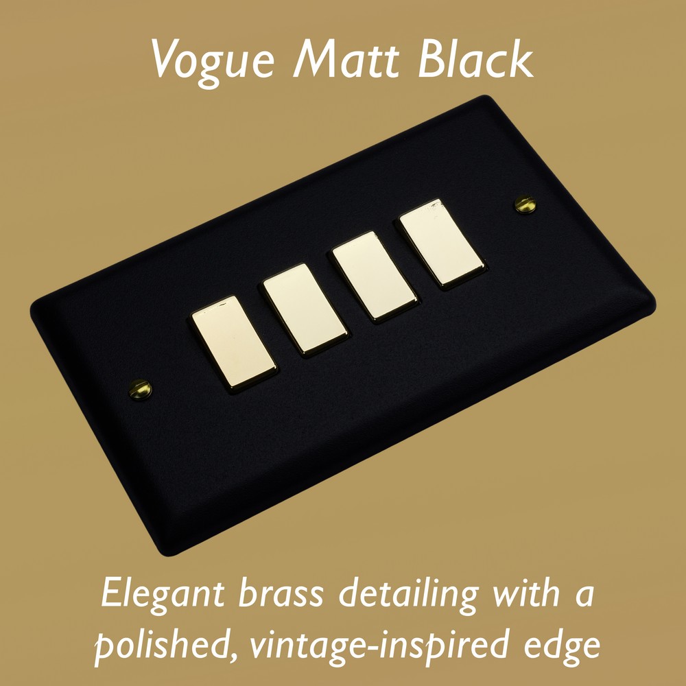 The Matt Black finish is powder-coated to give a tactile, textured finish, which is tough, durable and resistant to fingerprints and is elevated here with the signature brass detailing of the Vogue Collection. Varilight Decorative wiring accessories are British made and covered by the Varilight lifetime guarantee.