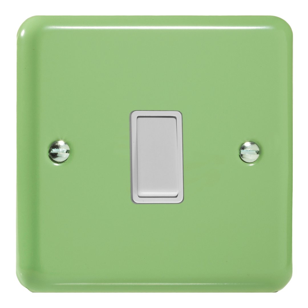 The beautiful Beryl Green finish features white inserts with chrome screws.? Varilight Decorative wiring accessories are British made and covered by the Varilight lifetime guarantee.