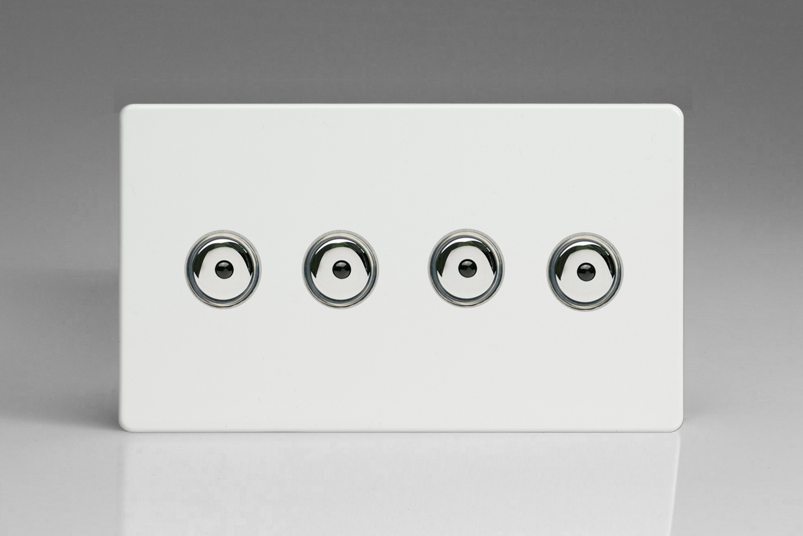 The Premium White finish is created using a high gloss polycarbonate and is beautifully presented on low profile screwless faceplate, paired with chrome inserts and featuring hidden fixings, contributing to its understated appeal. Varilight Decorative wiring accessories are British made and covered by the Varilight lifetime guarantee.
