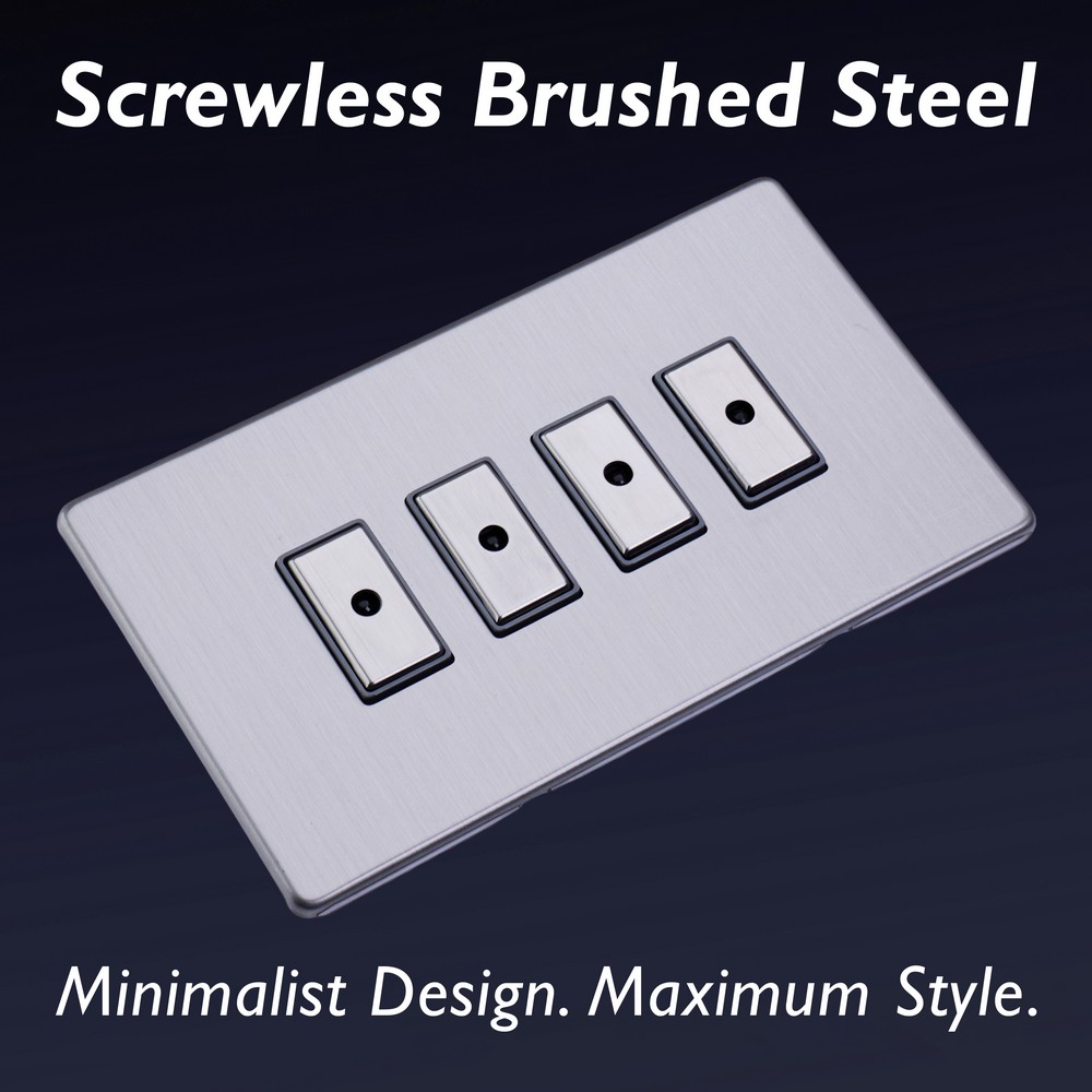 Screwless Low Profile: minimalist design with clip-on faceplates and hidden fixings for a smooth, modern look. The Screwless Metal faceplates are expertly manufactured in the UK to the highest standard.