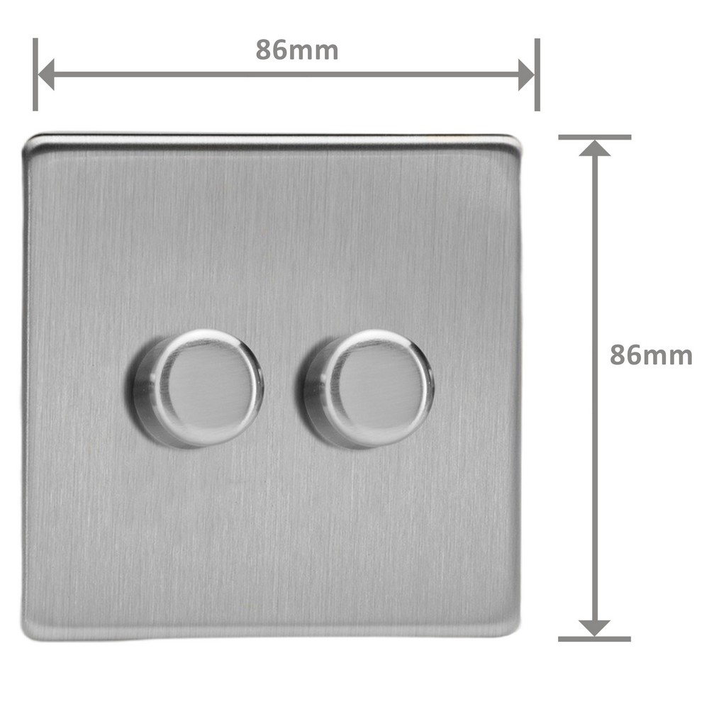 Product Description: 2-Gang 2-Way V-Pro Push On/Off Rotary LED Dimmer 2 x 0-120W