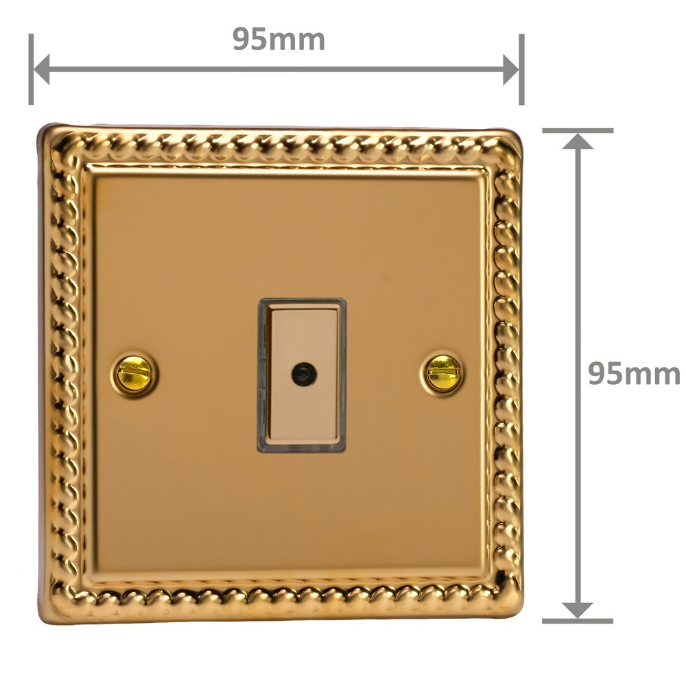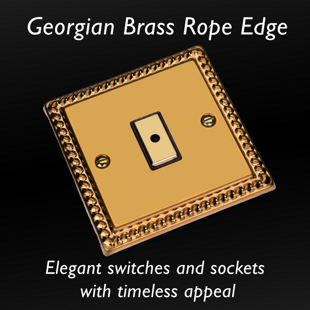 Polished Brass remains one of the most versatile finishes and is paired here with Georgian rope edged faceplates for an enduringly classical appeal. Varilight Decorative wiring accessories are British made and covered by the Varilight lifetime guarantee.