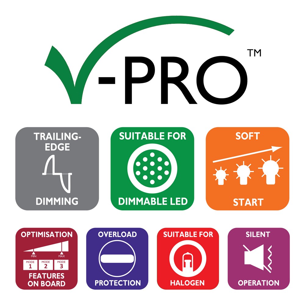 Safety Advice: Not suitable for use with non-dimmable fluorescent bulbs and tubes, TRIAC dimmable loads, wire-wound or toroidal transformers or electric motors. Do not overload.
