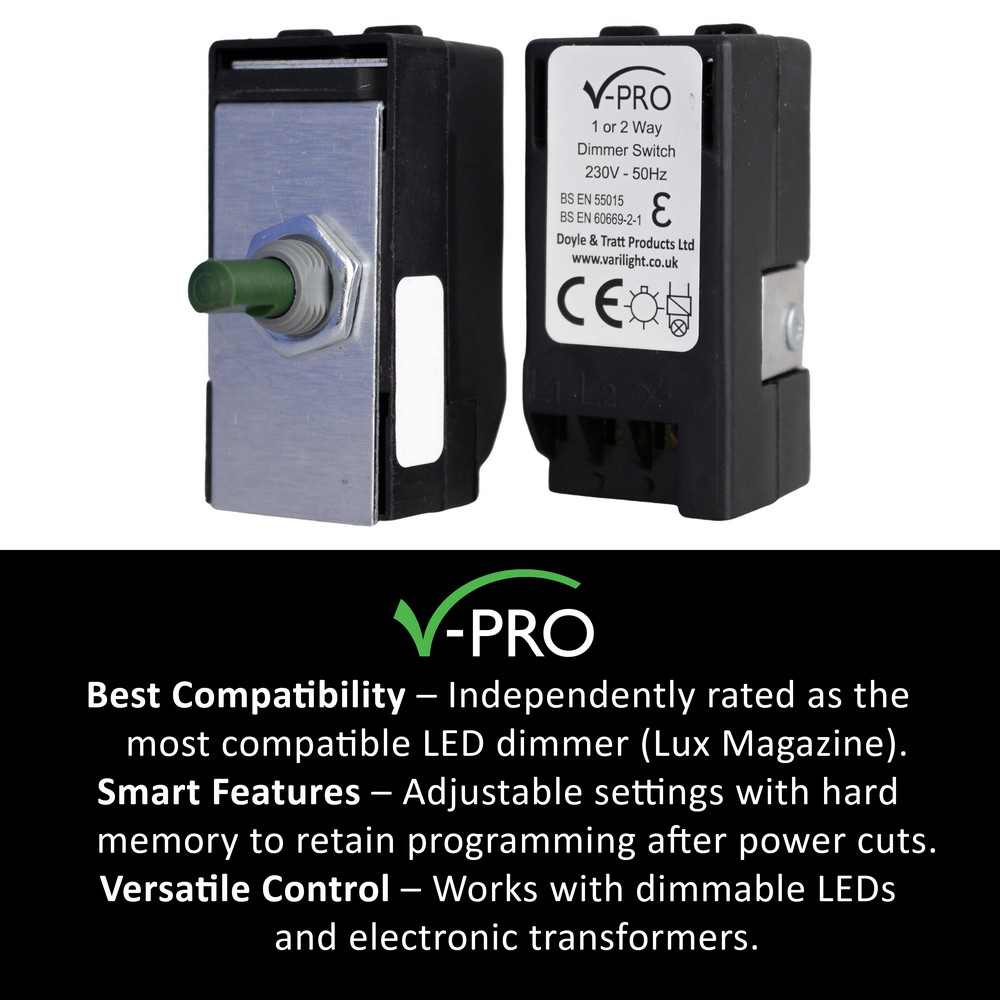 Safety Advice: Not suitable for use with non-dimmable fluorescent bulbs and tubes, TRIAC dimmable loads, wire-wound or toroidal transformers or electric motors. Do not overload.