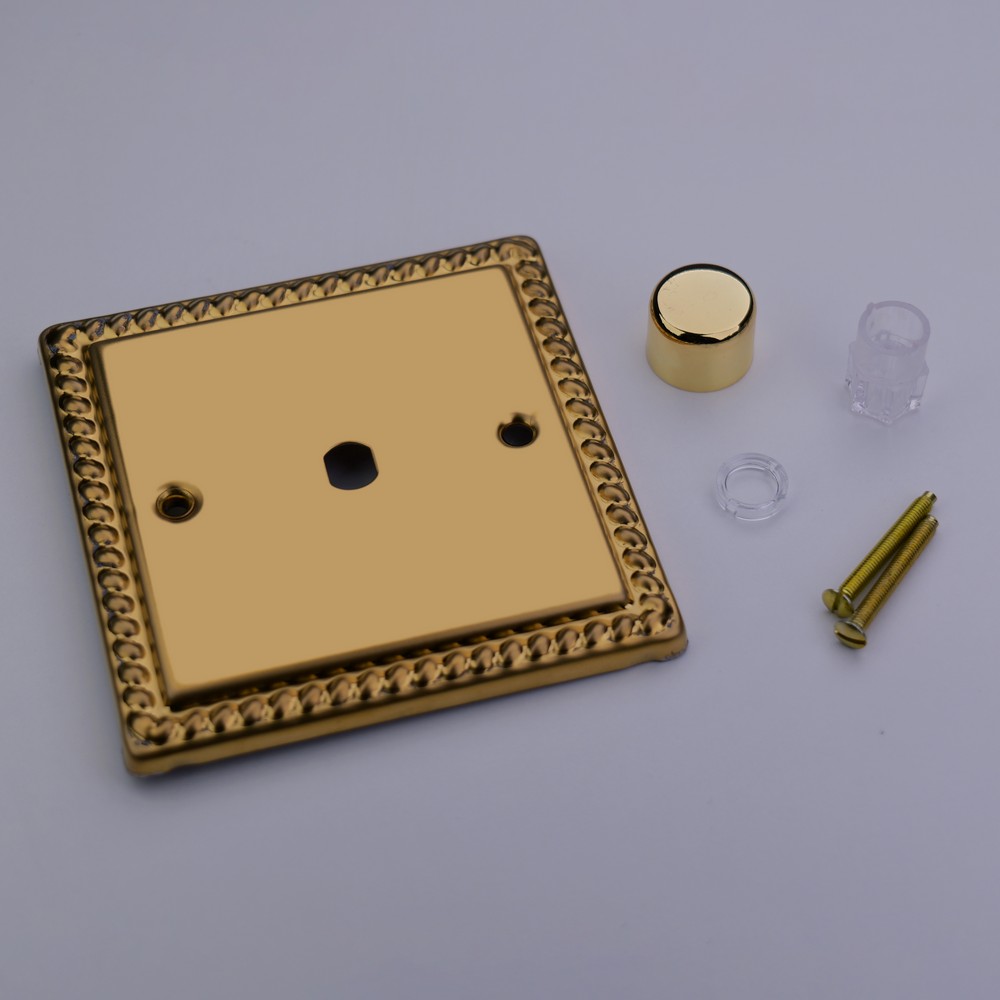 Polished Brass remains one of the most versatile finishes and is paired here with Georgian rope edged faceplates for an enduringly classical appeal. Varilight Decorative wiring accessories are British made and covered by the Varilight lifetime guarantee.