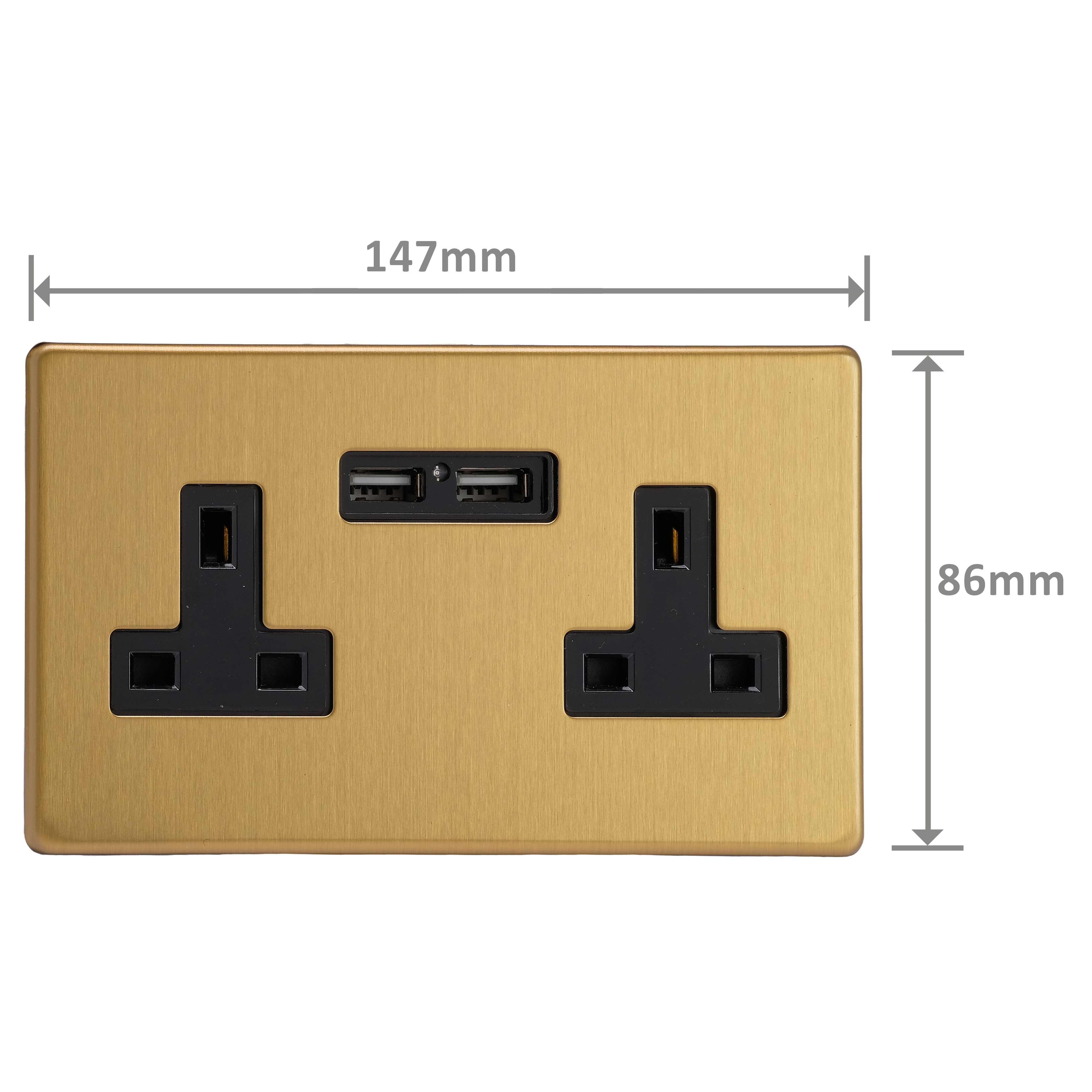 Product Description: 2-Gang 13A Unswitched Socket with 2 x 12W Shared USB A Charging Ports