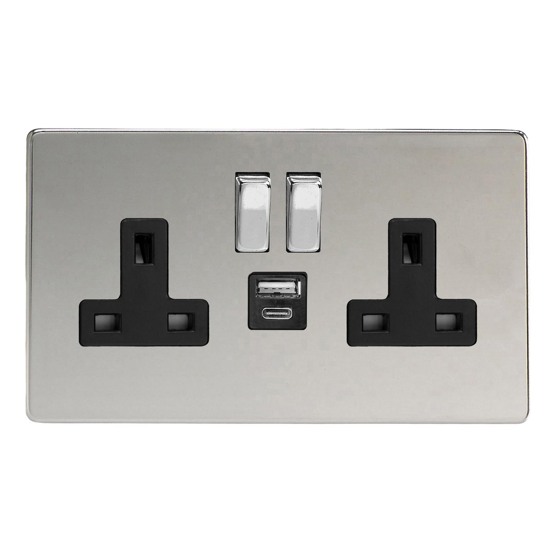 Product Description: Double Socket with 20W Shared USB A & C Charging Ports