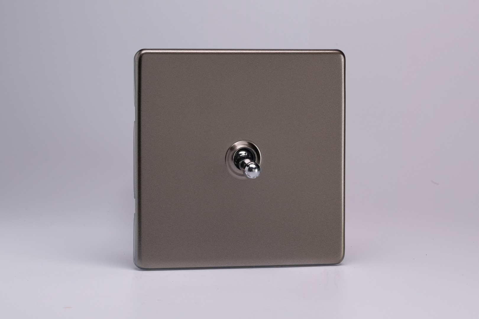 The Pewter finish makes a dramatic statement with its black inserts and contrasting polished chrome switch rockers, toggle and dimmer knobs. Varilight Decorative wiring accessories are British made and covered by the Varilight lifetime guarantee.