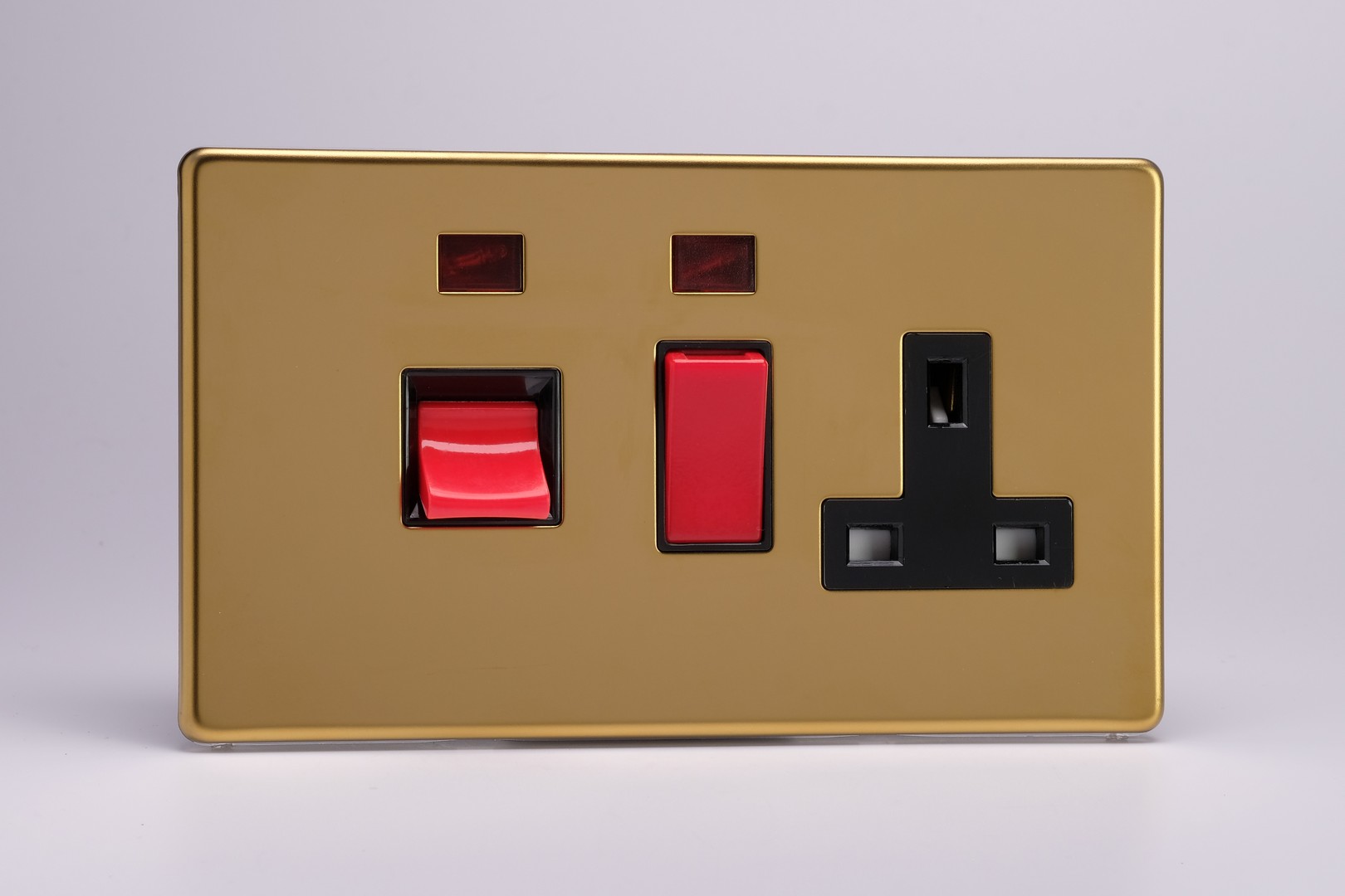 Product Description: 45A Cooker Panel with Neon with 13A Double Pole Switched Socket Outlet (Red Rocker)