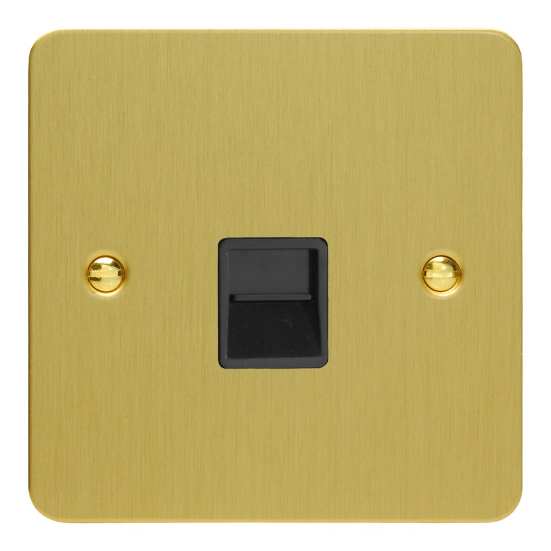 The elegant Brushed Brass finish is paired with polished brass metal rockers and matching brass screws, with the option of black or white socket inserts. Varilight Decorative wiring accessories are British made and covered by the Varilight lifetime guarantee.