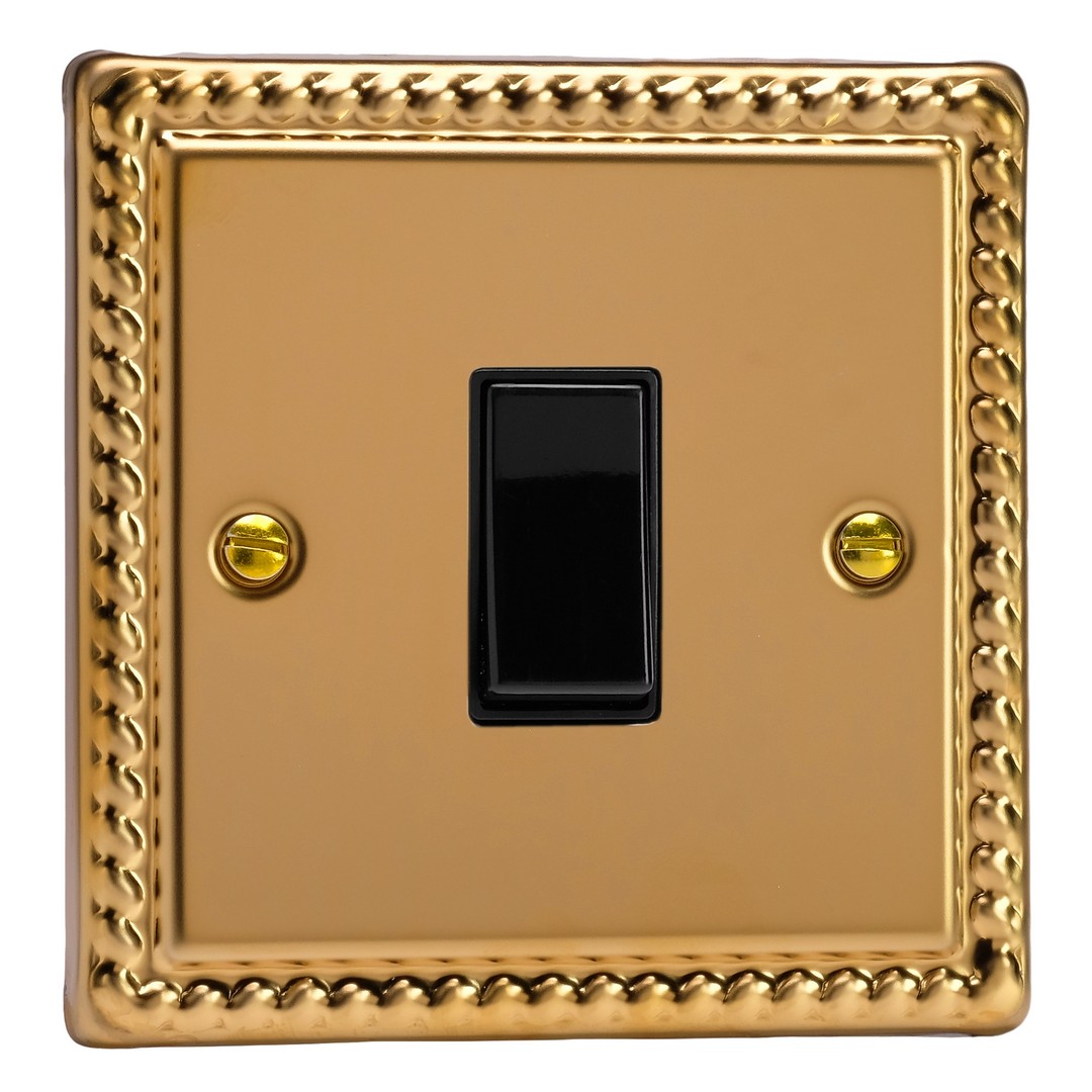 Polished Brass remains one of the most versatile finishes and is paired here with Georgian rope edged faceplates for an enduringly classical appeal. Varilight Decorative wiring accessories are British made and covered by the Varilight lifetime guarantee.