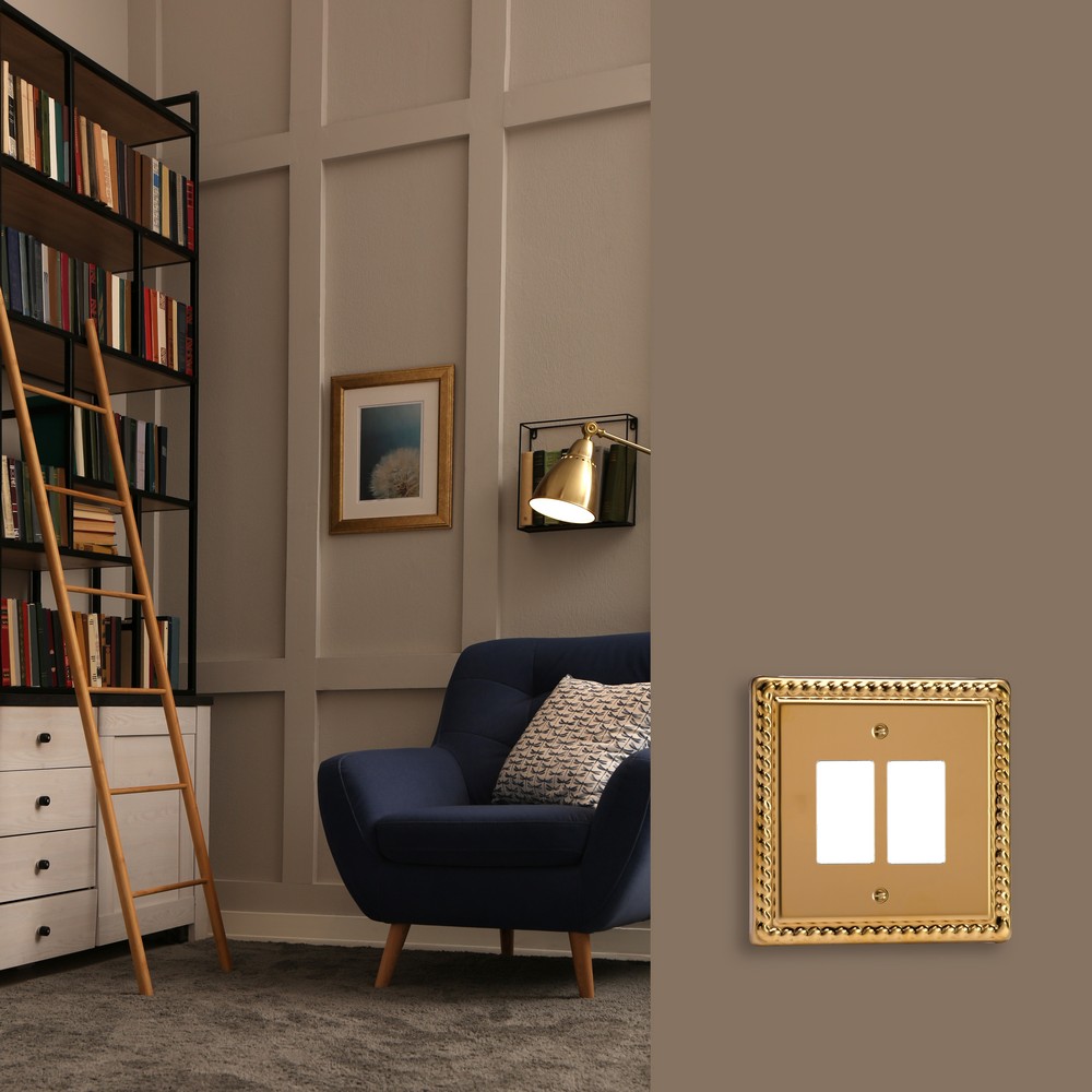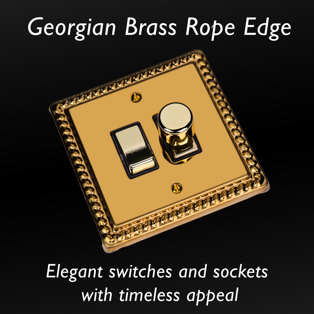 Polished Brass remains one of the most versatile finishes and is paired here with Georgian rope edged faceplates for an enduringly classical appeal. Varilight Decorative wiring accessories are British made and covered by the Varilight lifetime guarantee.