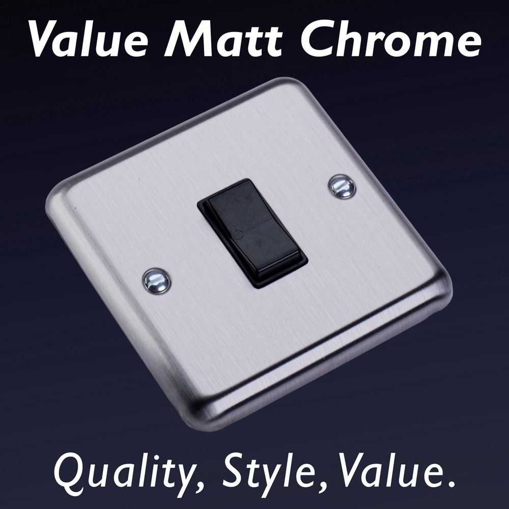 Matt Chrome offers unbeatable value for those seeking a beautiful Decorative finish at a great price point. Choose between black, white or matching metal rockers. Varilight Decorative wiring accessories are British made and covered by the Varilight lifetime guarantee.