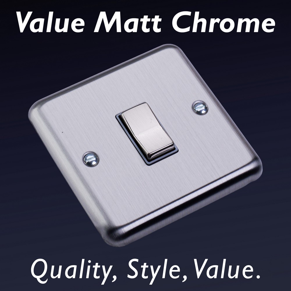 Matt Chrome offers unbeatable value for those seeking a beautiful Decorative finish at a great price point. Choose between black, white or matching metal rockers. Varilight Decorative wiring accessories are British made and covered by the Varilight lifetime guarantee.