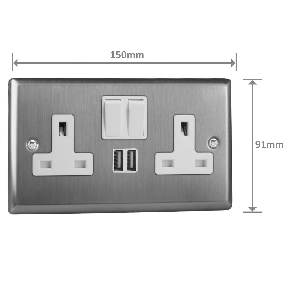 Product Description: Double Socket with 2 x 12W Shared USB A Charging Ports