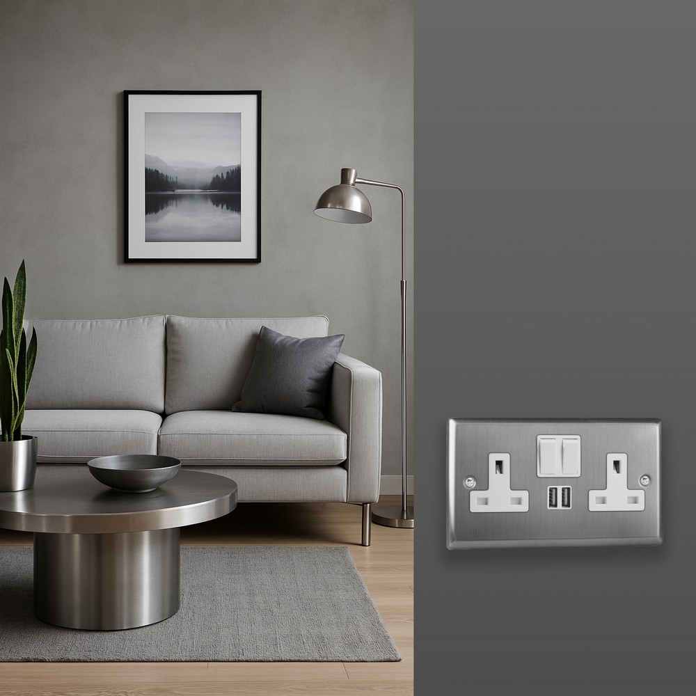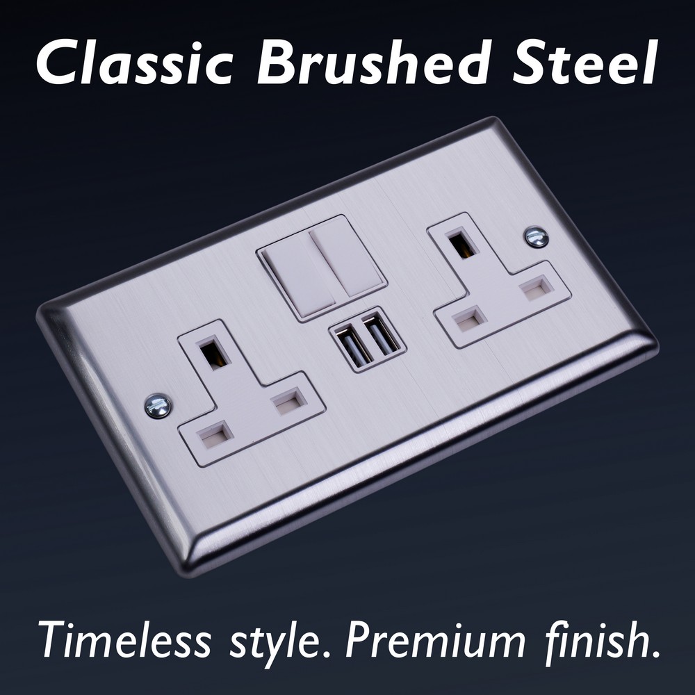 With its clean, understated style, Brushed Steel brings effortless sophistication to any room ? a finish chosen by designers for its versatility.Varilight Decorative wiring accessories are British made and covered by the Varilight lifetime guarantee.
