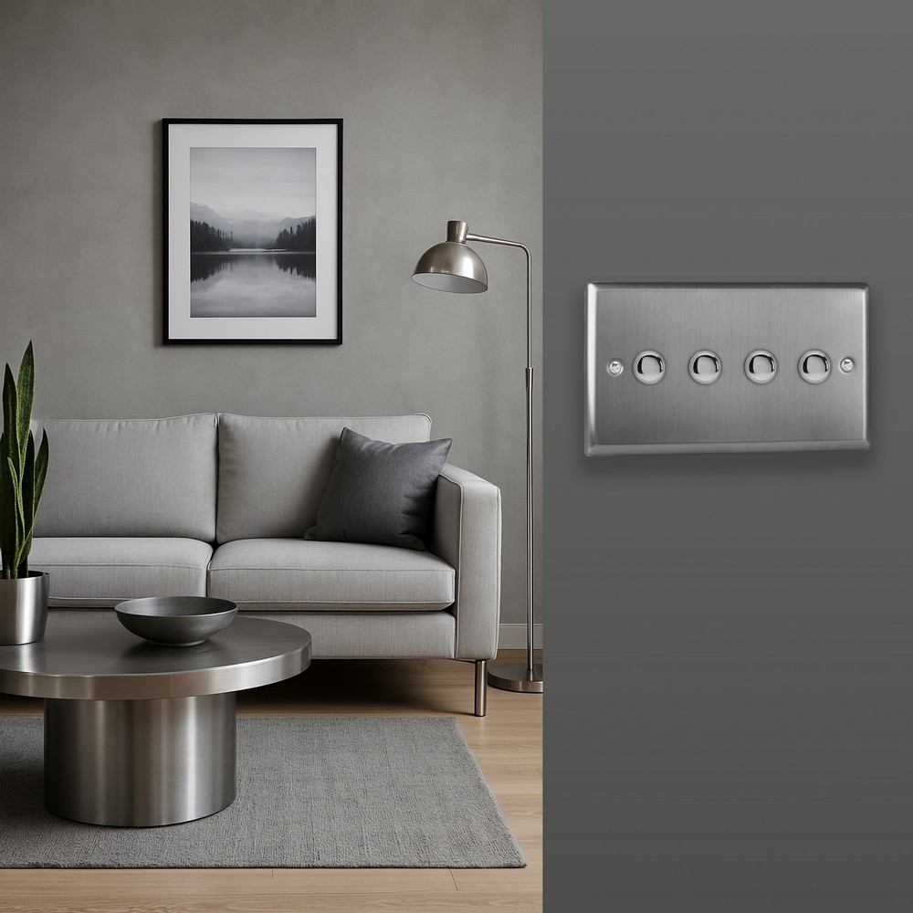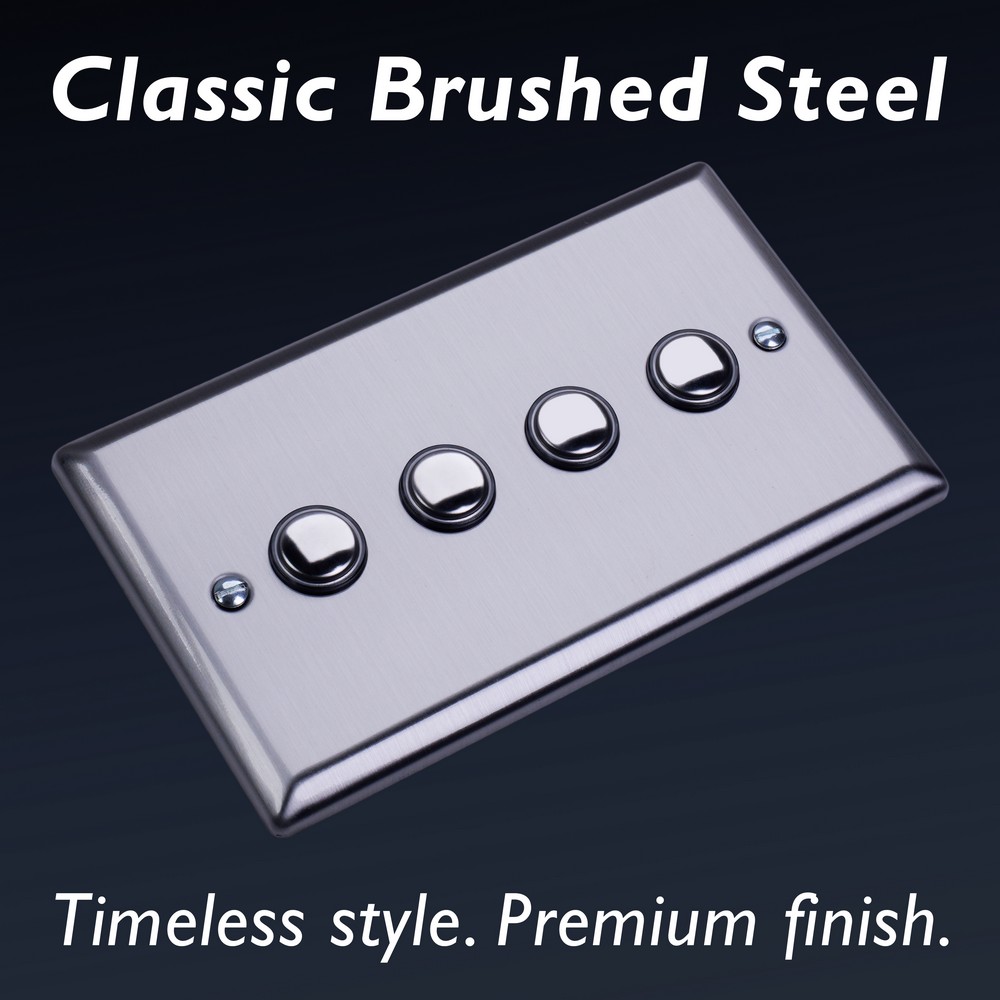 With its clean, understated style, Brushed Steel brings effortless sophistication to any room ? a finish chosen by designers for its versatility.Varilight Decorative wiring accessories are British made and covered by the Varilight lifetime guarantee.
