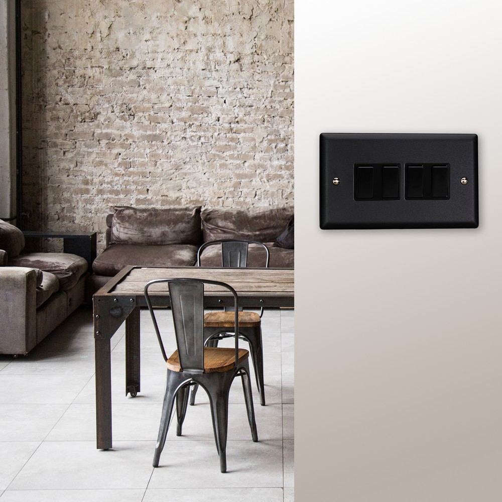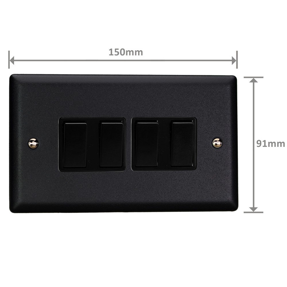 The Matt Black finish is powder-coated to give a tactile, textured finish, which is tough, durable and resistant to fingerprints and is offered with black plastic inserts and matching black screws. Varilight Decorative wiring accessories are British made and covered by the Varilight lifetime guarantee.